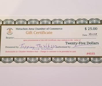 TOPPING THE WEB ( METUCHEN CHAMBER GIFT CERT)